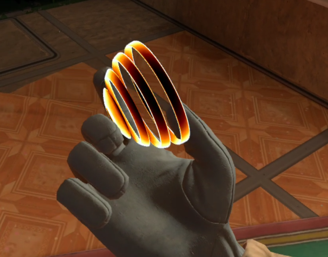 Use the light on your detector to reveal an artifact now hovering above the table, just like revealing any other artifact as you’ve done many times by now.